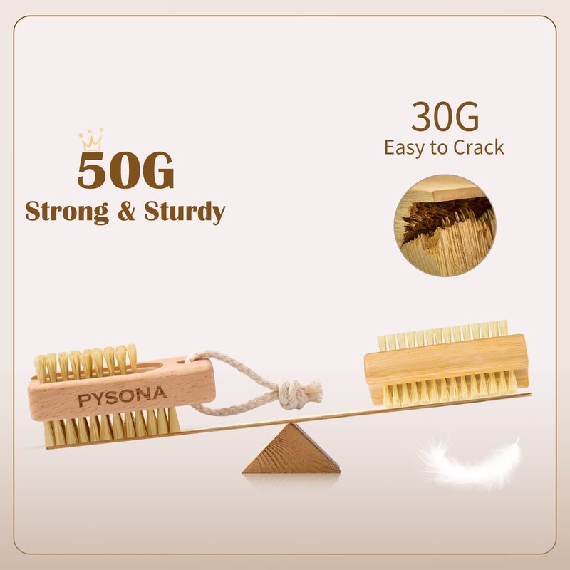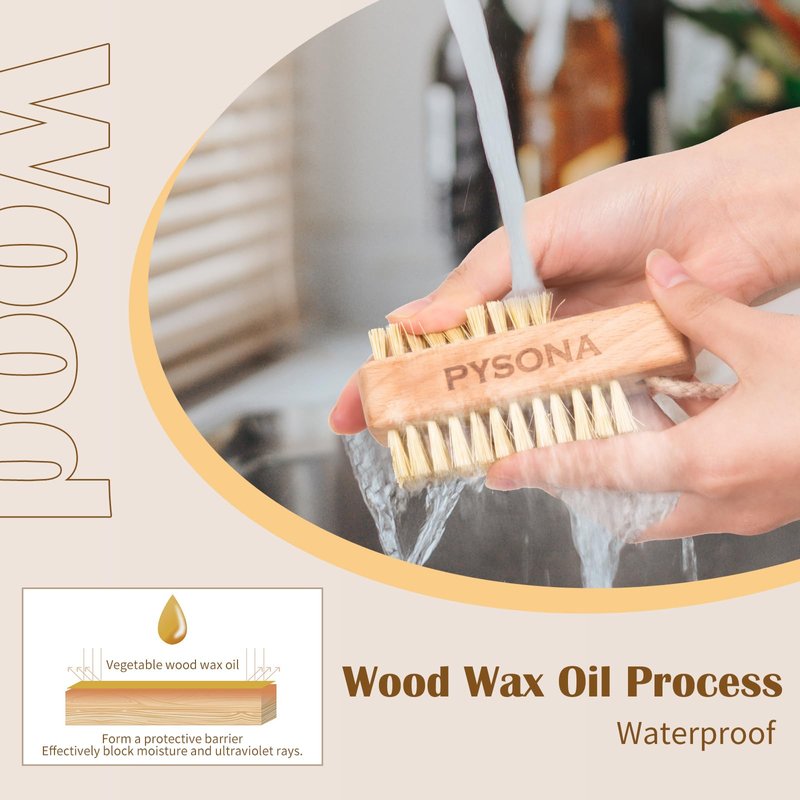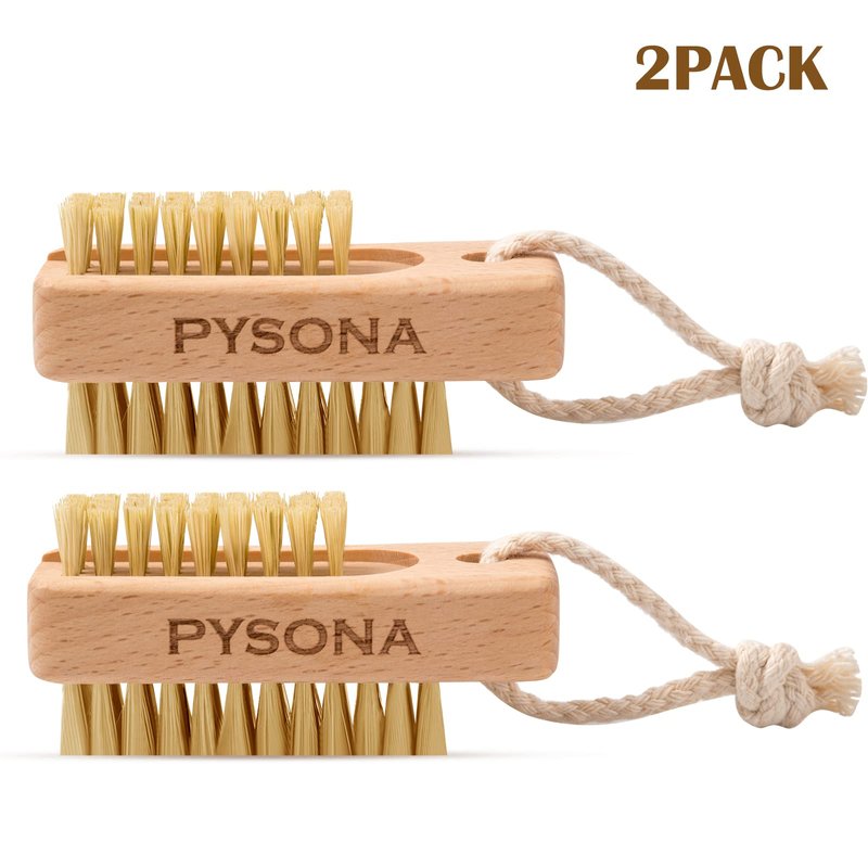 PySona 2 Pieces Natural Wooden bristle nail brushes for Cleaning Fingernail and Toenail non-slip two-sided Grip Hand foot Nail Brush Set Manicure Pedicure Scrubber Supply Men Women Girls