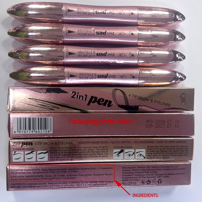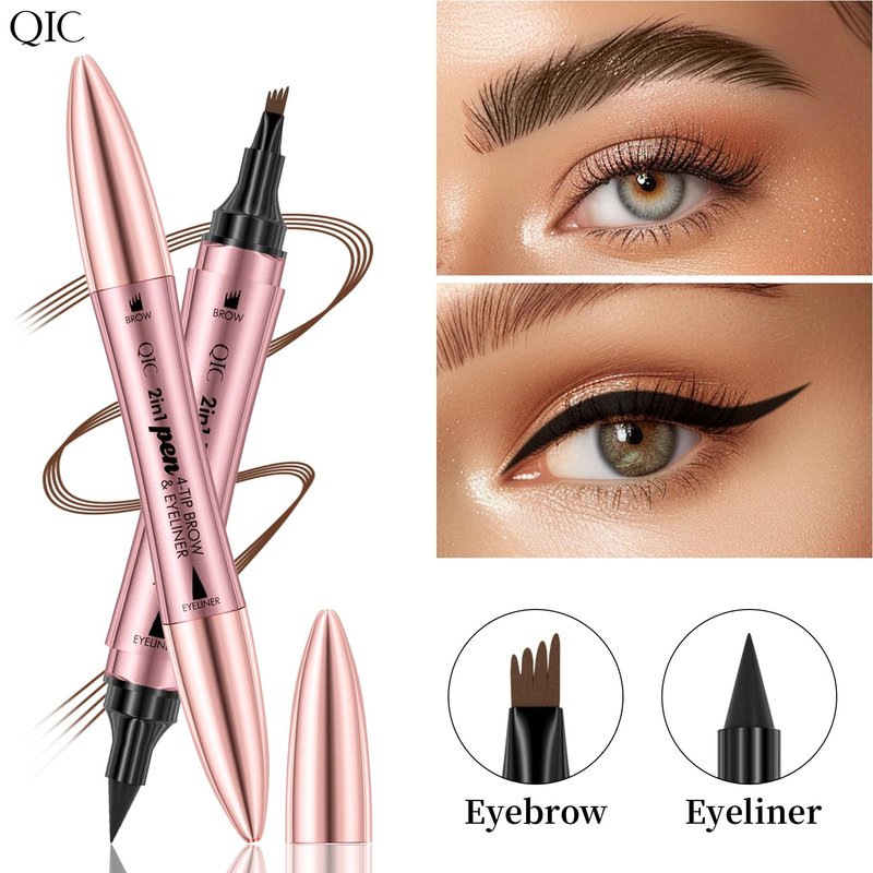 Elevate your makeup routine with this innovative 2-in-1 eyebrow pencil and eyeliner from QIC. The 4-prong eyebrow pencil creates incredibly natural-looking brows with precise strokes, while the fine-tipped eyeliner allows you to achieve a flawless winged look. Crafted with high-quality ingredients, this dual-ended makeup tool glides on smoothly for effortless application. The sleek rose gold design adds a touch of elegance to your vanity. With this all-in-one product, achieving a polished and put-together appearance has never been easier. Take your beauty game to the next level and let your eyes be the star of the show.