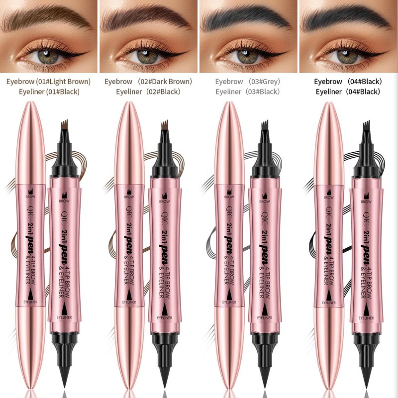 Q710 2in1pen,4-Tip Brow pen&Eyeliner,Dcuble-ended design,wild eyebrow makeup,microblading eyebrow pen,waterproof,Soft nib,With one smooth stroke (4#Black)