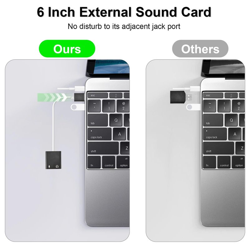 - THE FINEST SOUND CARD SUBSTITUTE: The QAJOPFN USB Audio Adapter is perfect substitute for your malfunctioning sound card or audio port. It extends the 3.5mm mono microphone input and speaker-headphone output via the USB port, allowing you to connect small speakers, headphones, microphones, dual-plug headphones and more.