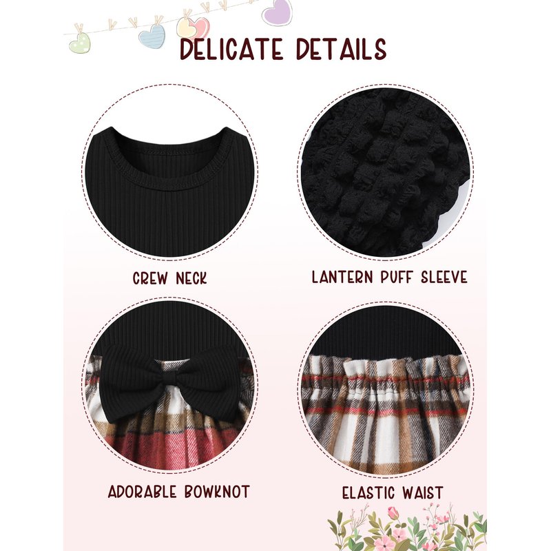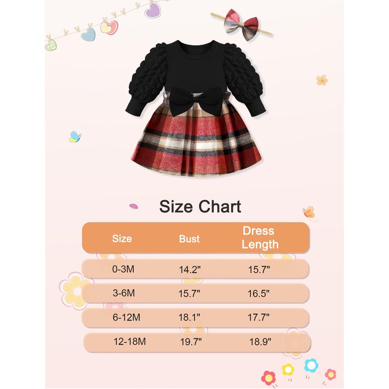 - 🎀🎀【Package Include】1* Baby Girl Puff Sleeve Plaid Dress + 1* Bowknot Headband. Baby girl long sleeve dress are perfect gifts for your daughter, granddaughter, niece. Your princess would like to show how beautiful her dress is!
