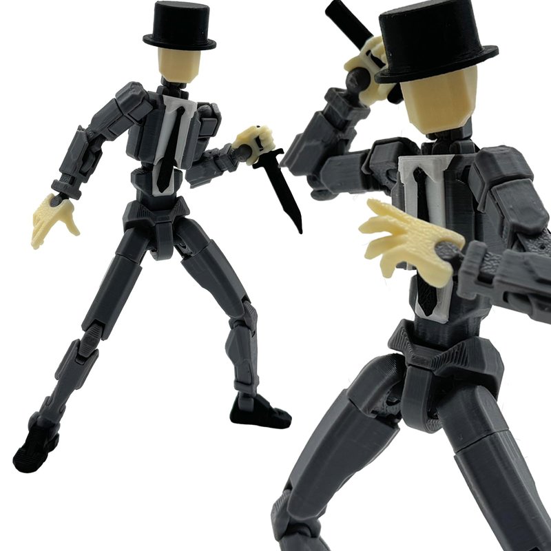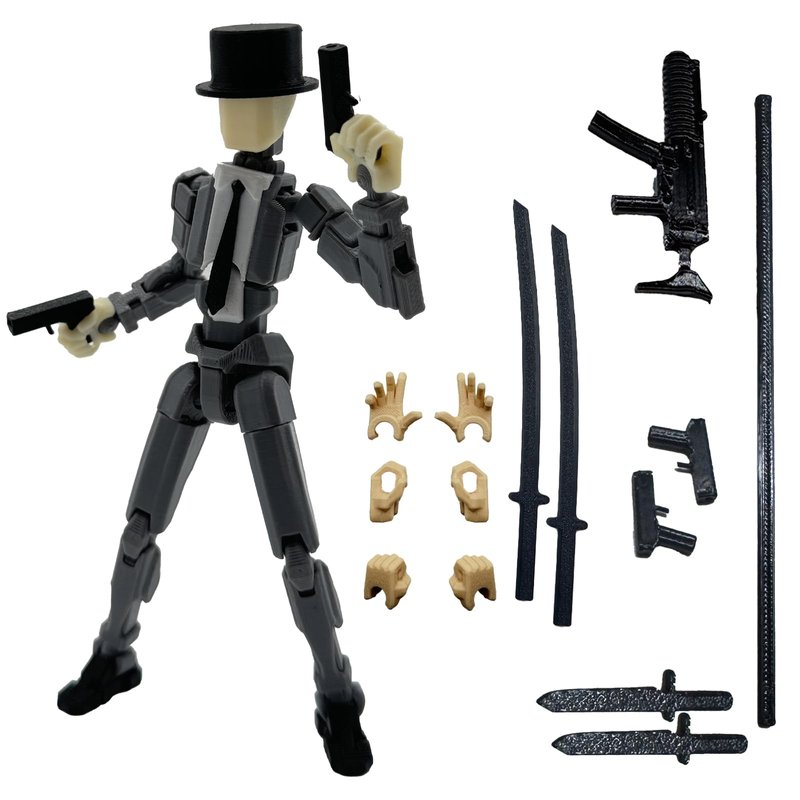 QAONIE 3D Printed 5.54-inch Multi-Jointed Action Figures Dummy13, Full Body Mechanical Movable Toy, Multiple Accessories, Hand Painted Figure, Desk Decoration, Creative Gifts (Y-Gray Gentleman)