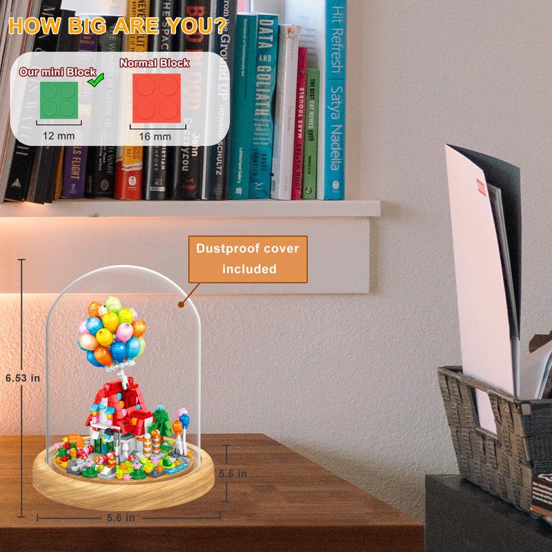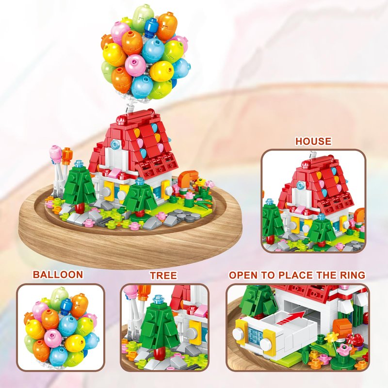 - 【Creative Balloon-house Building Blocks】Made of high-quality ABS plastic mini bricks, beautifully packaged,with bright colors and interesting shapes,provides a base and a transparent cover, including cute balloon, house, tree, and some colorful flowers. It's a great gift when you're visiting a friend's house.