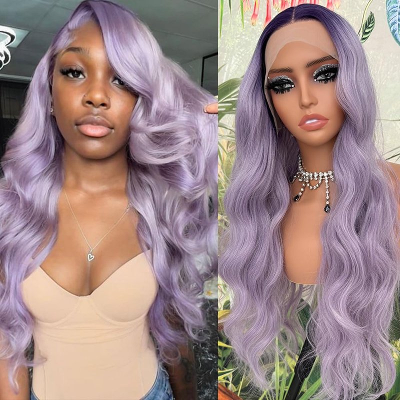 These long curly lace front wigs are perfect for any occasion. With their soft, body wave texture and natural looking colors, these synthetic wigs will have you looking your best whether you're attending a special event or just wanting a low maintenance hair style. The lace fronts allow a very natural hairline that you can part anywhere for versatile styling options. Coming in a beautiful light purple shade, these long wigs are ideal for cosplay or if you want a fun pop of color without committing to dyeing your natural hair. Their synthetic fibers are also very low maintenance, keeping their curls and volume all day without any fussing. Best of all, these wigs are comfortable enough to wear daily if you want an instant head of hair without the hassle.