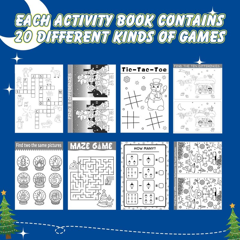 - Rich Games: there are 20 different games in each Christmas activity book, which are rich in variety, allowing children to choose a favorite game book and experience the joy of games with family or friends