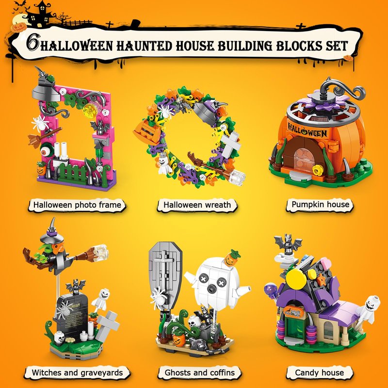 - Halloween Themed STEM Building Blocks: Kids can combine the six unique building toys—ghost, pumpkin carriage, candy house, witch tombstones, Halloween garlands and mini frameto build their own spooky haunted house, promoting imaginative play