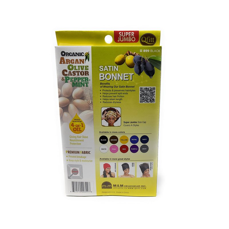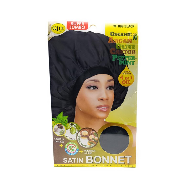 Qfitt Organic Argan + Shea Butter Olive Oil Super Jumbo Satin Bonnet #899 Black