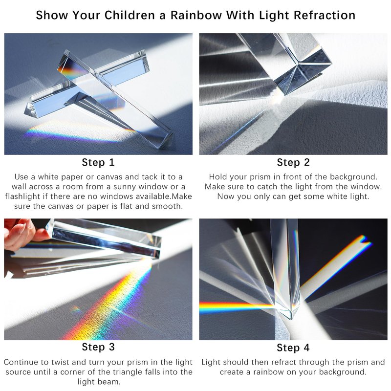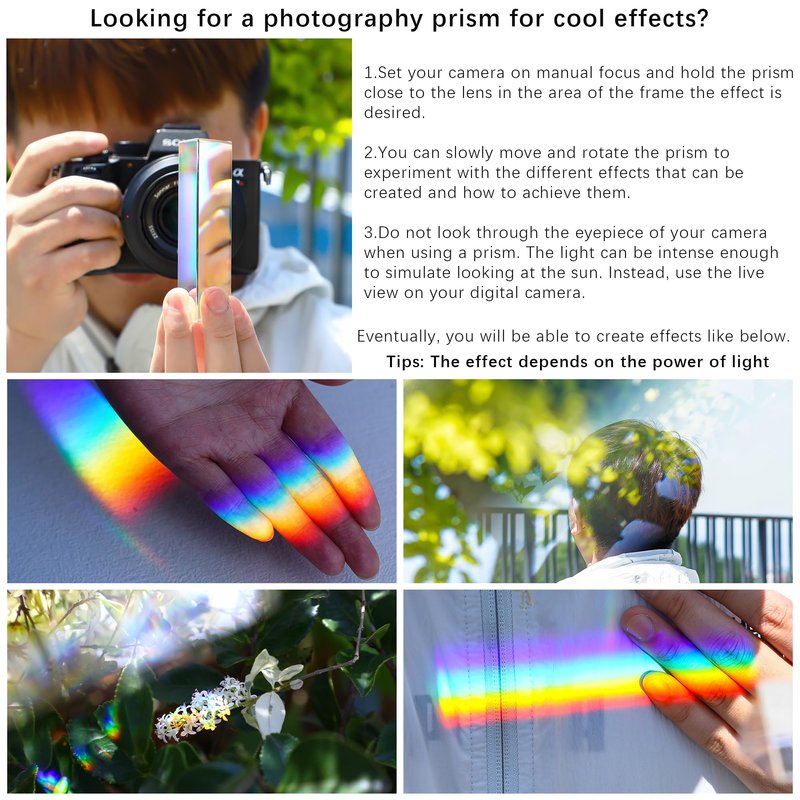 - Create Stunning Photos: Our crystal clear optical glass triangular prisms provide rainbow color light effects for unique and beautiful photos.