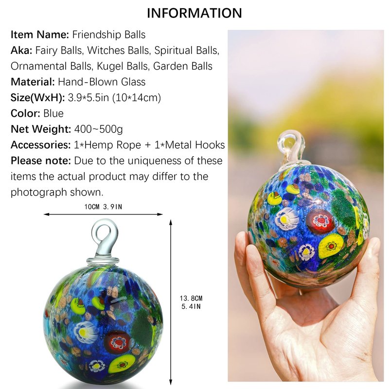 QFkris 4" Hand-Blown Glass Friendship Balls for Hanging Gardens Window Outdoor Gazing Ball Witch Balls Glass Ornament