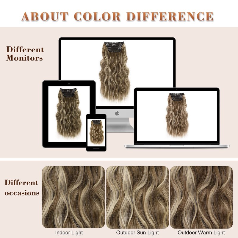Synthetic Hair Extensions Material:High-quality Synthetic hair extension Fiber, heat friendly fiber,Can be Straight & Curled (under 185 ℃).Please spray a little conditioner before heat. Wavy Extensions for Women Texture: Long Wavy