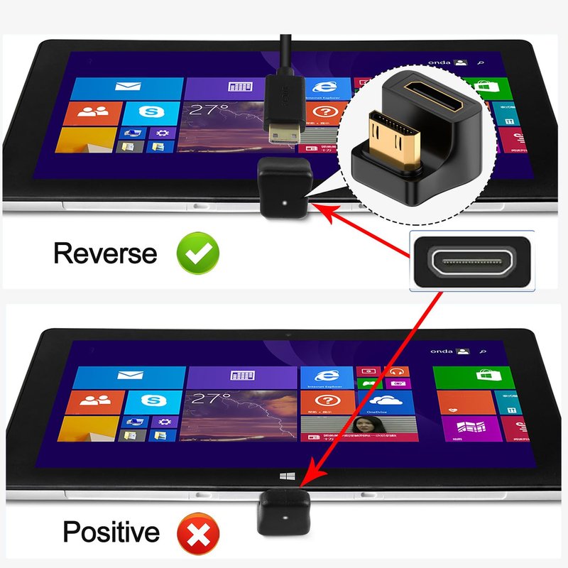 - 【Application】8K Mini HDMI 180 degree angle video display adapter for tablets, digital cameras, portable camcorders, graphic video cards, HDTVs and mini projectors. Please make sure your device has Mini HDMI port.