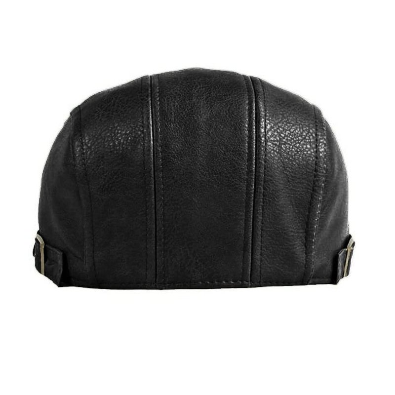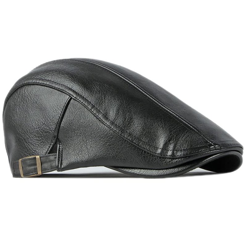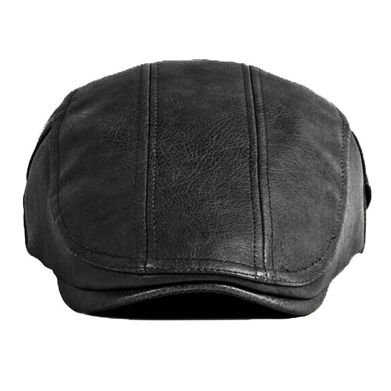Qianuer Newsboy Hats for Men Leather Ivy Flat Cap Gatsby Driving Cabbie Hat Black