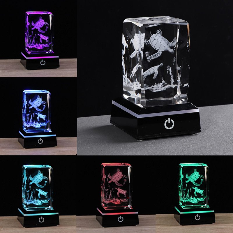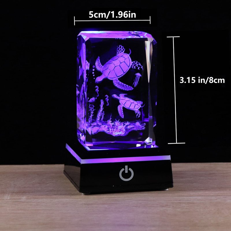 3d Crystals sea turtle decor gifts for women, turtle figurines stuff gifts for turtle lovers sea turtle statue paperweight Birthday/Christmas Gifts For BEST friend , Keepsake&Paperweight Color:Crystals sea turtle decor gifts Product Features: 1. Made with K9 Highest-quality Crystal, Making the Crystal More Transparent and Glossier. 2. The 3D Laser Engraved Pattern are Stereoscopic, without Breaking the Surface of Crystal, All Patterns are Clear and Distinct. 3. Equipped with a Special LED Lighting Base with 6 Light Modes, the Light Color can be Adjusted Automatically, Making the Crystal Colorful. 4. The Touch Switch on the Base is Easy to Use. You Can Use Batteries or Connect the Power Via a USB Cable. 5. The Exquisite Packing Box Looks Delicate and Classy. Product Specification: Color of Crystal: Clear Material:K9 Crystal Crystal Size:80*50*50mm (3.15*1.97*1.97in) Crystal Weight:0.52kg (1.15 lbs) Color of LED Lighting Base:Black Material:Plastics Base Size:68*68*28mm (2.68*2.68*1.1in) Base Weight:0.05kg (0.11 lbs) Box Size: 205*110*85mm(8.07*4.33*3.35in) Total Weight: 0.75kg(1.67lbs) Package Include: 1 x 3D Laser Engraved Crystal 1 x LED Base 1 x Data Cable 1 x Cloth for Cleaning Crystal 1 x Gift Card 1 x Cardboard Gift Box Order yours today and enjoy!