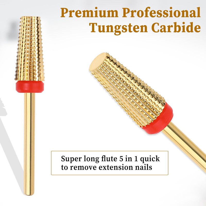 Qianyu Super Long 5 in 1 Nail Drill Bits Professional 3/32'' Carbide Tungsten Two Way Rotary Use for Both Left and Right Handed Advanced Safety Bits Fast Remove Acrylic Nails for Manicure Pedicure