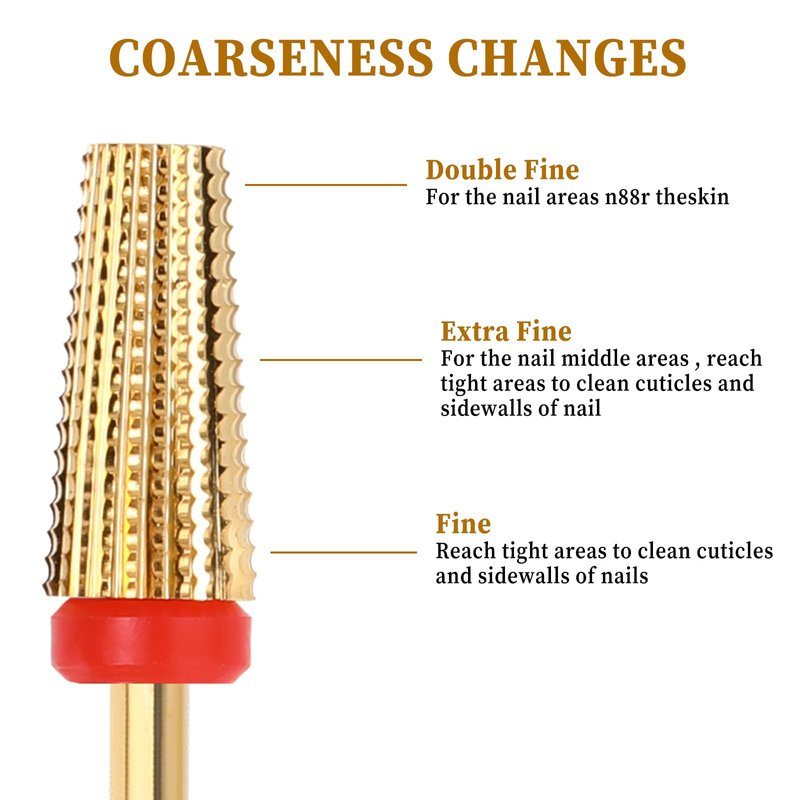 - 【Two-way Rotate Design】Our 5 in 1 nail drill bit adopts a Two-way rotate design and can cut smoothly in clockwise and counter-clockwise directions. You can choose the left and right hands for nail art operations according to your needs saving more time.
