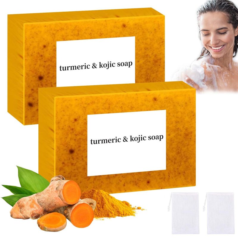 QiFind Lemon Turmeric Kojic Soap, Turmeric Soap For Face And Body, Natural Organic Turmeric Face And Body Wash Soap Bar, Honey Lemon Turmeric Soap Sticks (2 pcs)