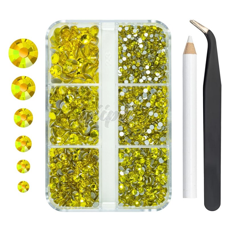- ❤【Perfect combination of Golden Yellow Gems carefully selected by qiipii】Specially designed for your exquisite art and nail designs. This Citrine Yellow Rhinestones Charms set allows you to get more options and greater satisfaction at the lower cost. The set includes a total of 2550 Rhinestones in 6 different sizes: 1.5mm SS4 (800pcs), 2mm SS6 (700pcs), 2.5mm SS8 (500pcs), 3mm SS10 (350pcs), 4mm SS16 (150pcs), and 4.8mm SS20 (50pcs).