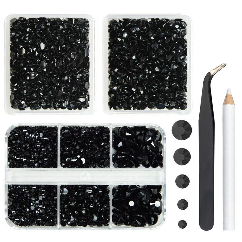 - ❤【3 Boxes Pure Black Resin Rhinestones + Stainless Steel Tweezer + Pickup Pen】5070PCS Pure Black flatback jelly rhinestones are assorted in 5 sizes: 2mm 2700PCS / 3mm 820PCS / 4mm 920PCS / 5mm 550PCS / 6mm 80PCS. Pure Black flatback Jelly rhinestones are very light and easy to carry, all gems are packed in each grid boxes according to different sizes, convenient to oragnize, no worry about rhinestones mixed together. Comes with 1 Tweezer and Pickup Pen for DIY Crafts.