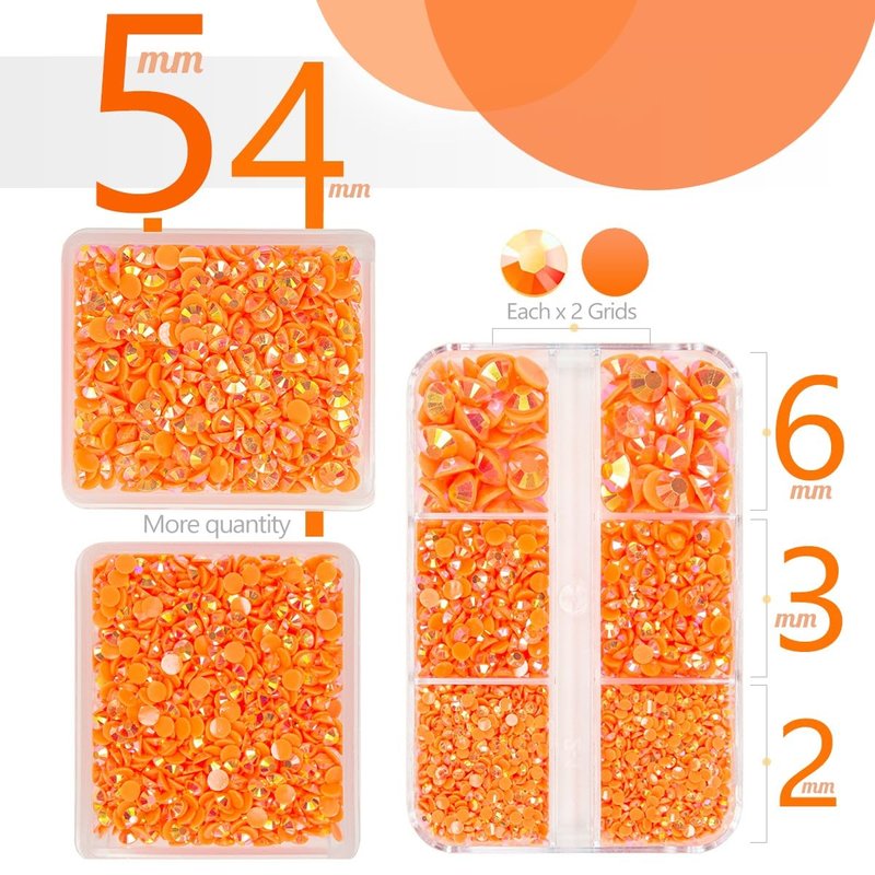 qiipii 3 Boxes 5070PCS Resin Flatback Rhinestones Oranges AB Flatback Jelly Resin Rhinestones 2mm 3mm 4mm 5mm 6mm Non Hotfix Gems Stones for Nails Face Makeup Tumblers Mugs Bottles DIY Crafts Decor