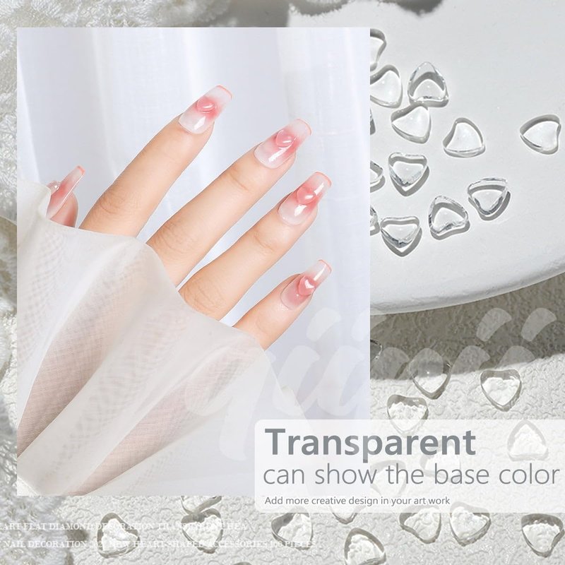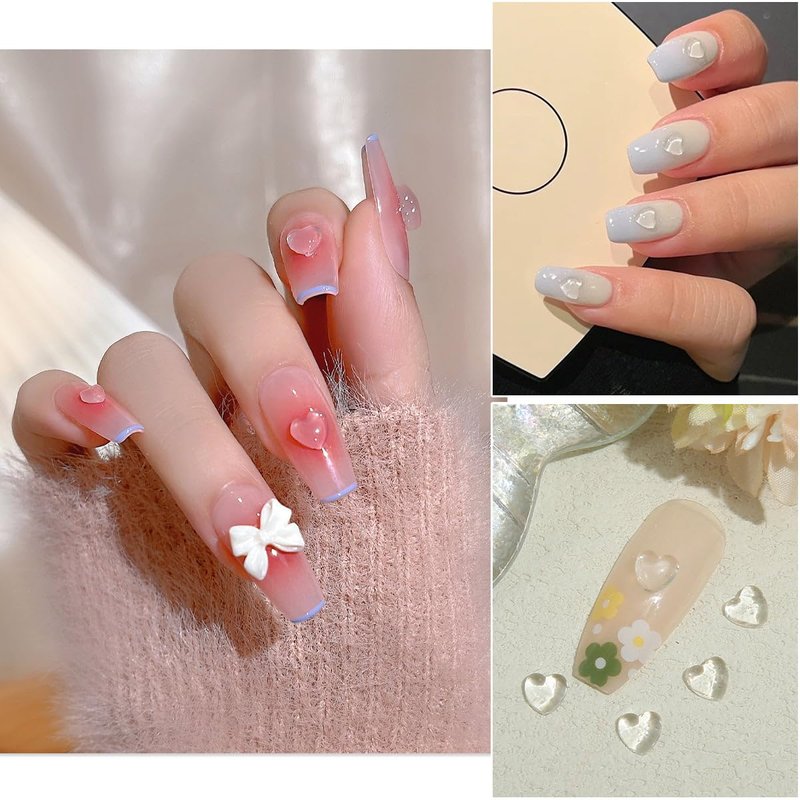 - 【Well-matched with Most Cute Nail Art Design】The cute style of these transparent heart-shaped nail art accessories makes them suitable for pairing with many different nail art decoration accessories. They will have a better presentation effect, especially when combined with other resin-based nail art accessories. For example, resin rhinestones, resin bows, resin pearls, and more. This maximizes the satisfaction of your creative needs.