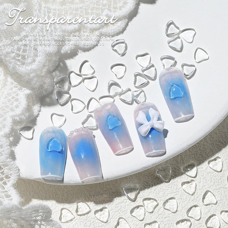 - 【New Fashion Transparent Heart Nail Charms】This is a pack of transparent heart-shaped nail art accessories, featuring the latest and most fashionable designs. It has a 3D shape and a fresh and cute style. Made from high-quality transparent resin material, it can be applied to any nail and perfectly showcase the base color, revealing a unique sense of beauty, allowing you to create more creative art designs.