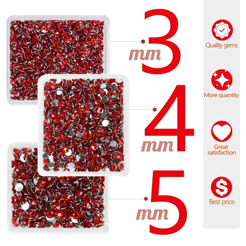 - ❤【3 Boxes Packs Red Resin Crystal Rhinestones for Crafting】Total 3 Boxes Siam Red Resin Rhinestones: 1 Box 3mm SS10, 1 Box 4mm SS16, 1 Box 5mm SS20, Flatback Ruby Red Resin Stones Bulk.