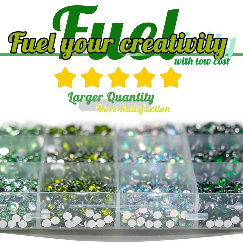 - ❤【4-Color Mega Collection】 For those who love DIY crafts, a set of resin crystal rhinestones with multiple colors is always a favorite. The qiipii Green AB Series collection allows you to have 4 color options in a low cost. Each color is carefully arranged in the box, making it visually appealing and pleasing to the eye. Opening the lid is like opening a box of light green/olive green candy, helping you effortlessly unleash your creative imagination in your craftwork.