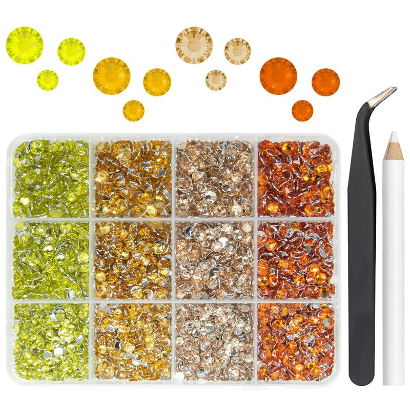 - ❤【4-Color Mega Collection】 For those who love DIY crafts, a set of resin crystal rhinestones with multiple colors is always a favorite. The qiipii Orange Yellow Series collection allows you to have 4 color options in a low cost. Each color is carefully arranged in the box, making it visually appealing and pleasing to the eye. Opening the lid is like opening a box of orange/yellowcandy, helping you effortlessly unleash your creative imagination in your craftwork.