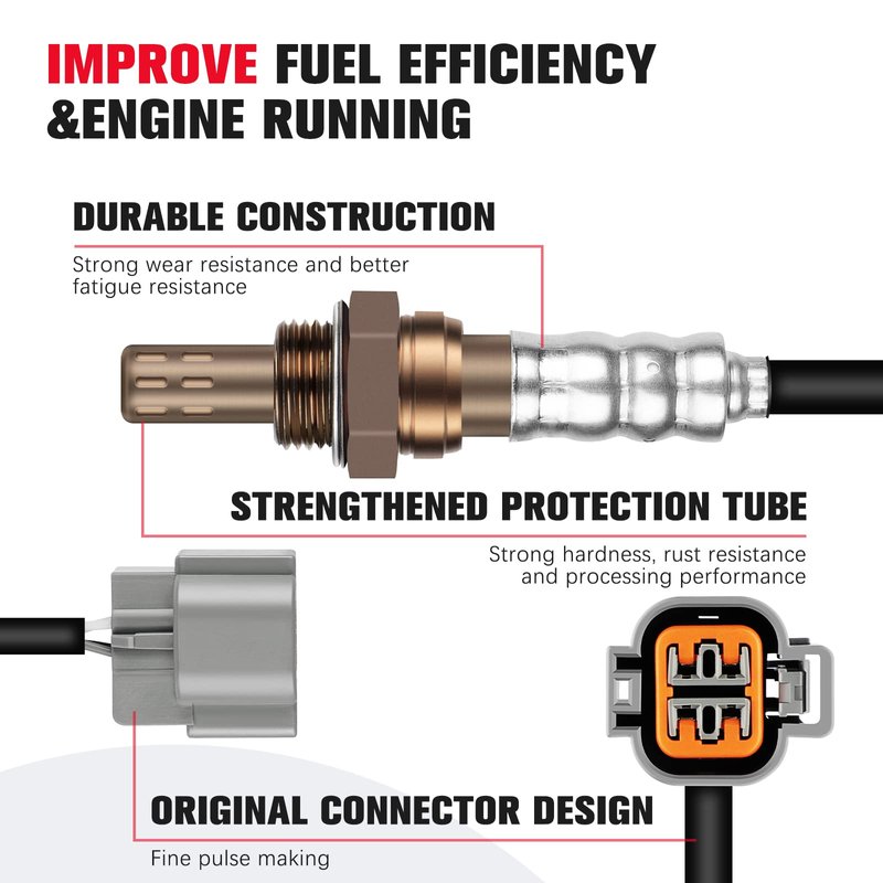 - ADVANTAGE - The unique protective layer can effectively prevent poisoning and permanent damage of the sensor unit.Silver alloy melting point joint to help installation.Processed according to the size of the original vehicle, it has wide applicability ,smooth acceleration, and good quality. Using our sensor can greatly reduce the increase in fuel costs and improve engine performance and fuel economy.