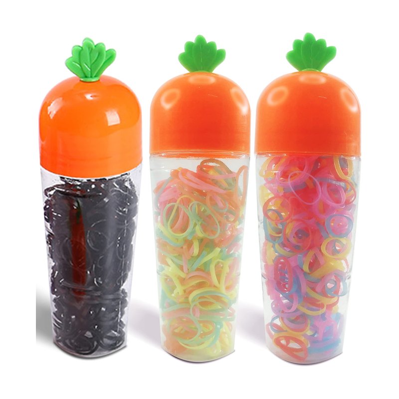 - What You Get: You will get 900 Tiny Rubber Bands, Fresh Color Mini Hair Ties, with 3 Carrot Shaped Boxes.