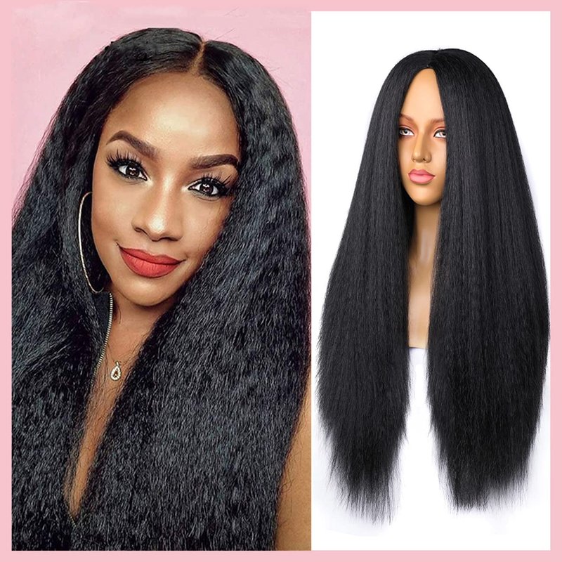 QITAQOTA Long Black Wigs Black Wigs for Women Yaki Wigs None Lace Kinky Straight Wig Synthetic Wigs Hair Replacement Wigs 26 Inch