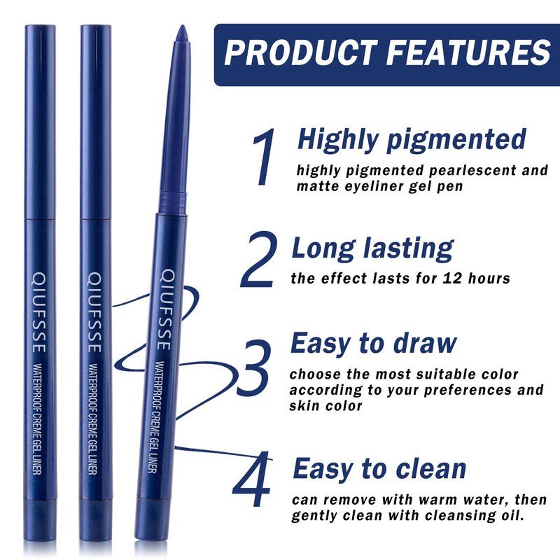 2.Long-lasting waterproof,eyeliner pencil uses a high-quality formula to ensure a smooth use experience and a long-lasting waterproof makeup effect,which can maintain elegant eye makeup all day in hot summer or humid environments.