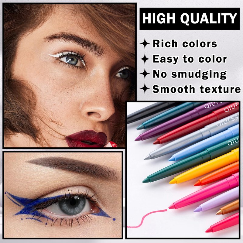 - 【Long-lasting Waterproof】Eyeliner pencil uses a high-quality formula to ensure a smooth use experience and a long-lasting waterproof makeup effect,which can maintain elegant eye makeup all day in hot summer or humid environments.