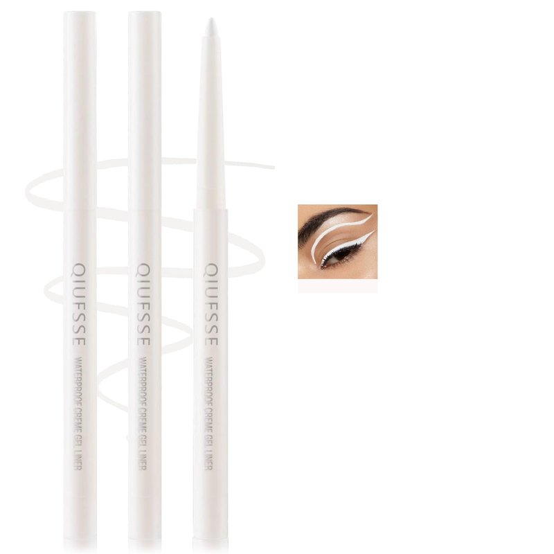 QIUFSSE 3PCS White Eyeliner Pencil Waterproof Eyeliner Pencil High-Pigmented Eye Liner Pencils,Long-lasting Colorful Eyeliner Pen Multi-function Eyeshadow Pen(Classic White)