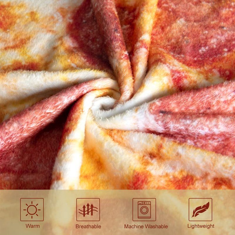- Novelty and Funny - 3D printing technology can ensure a more realistic pizza pattern. It has the same salami pizza print on both sides. This trending throw blanket can make yourself wrap like a big delicious pizza.