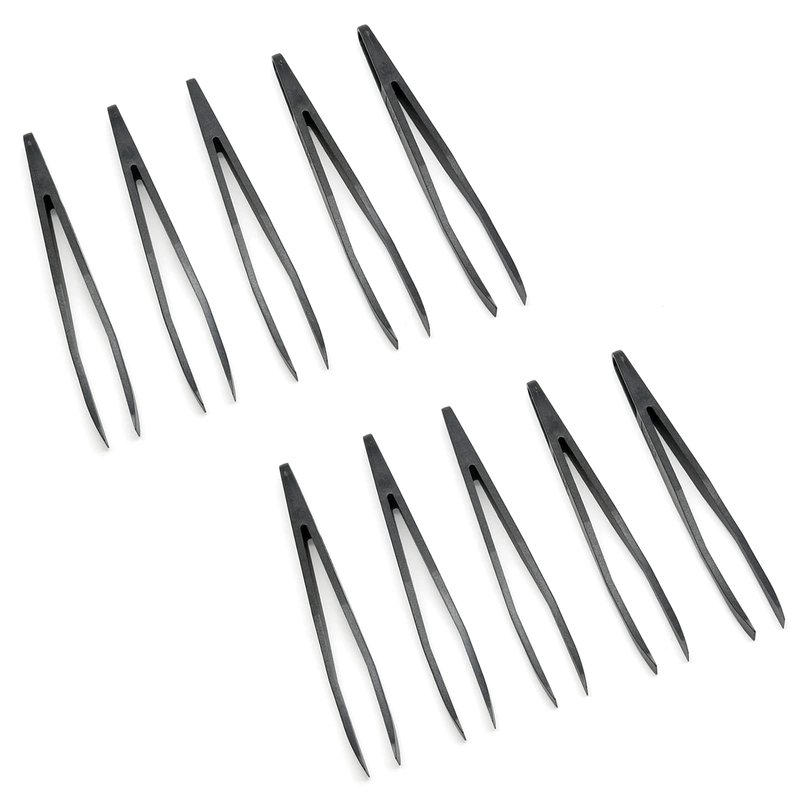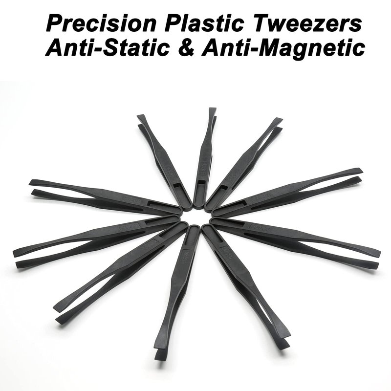 Qjaiune 10Pcs Flat Tip Plastic Tweezers, Anti-Static & Anti-Magnetic Tweezers, Precision Tweezers Set for Crafts Electronics, DIY, Repair Tool (4.6 Inch, Black, 93308)