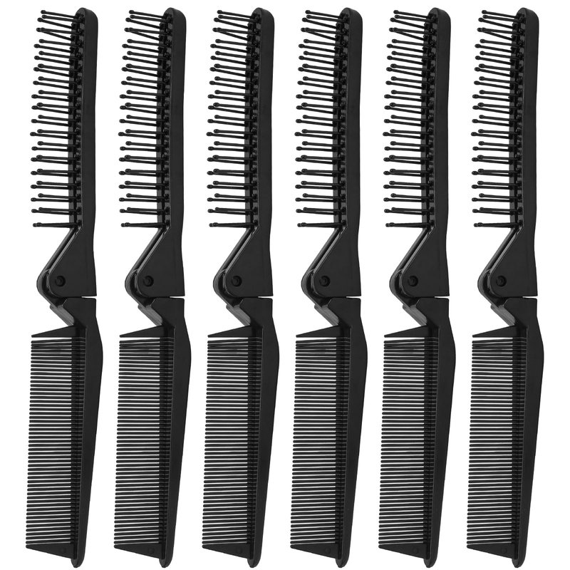 Qjaiune 6 PCS Travel Foldable Brush Comb Portable Folding Comb, Anti-Static Hair Comb Mini Pocket Comb, Double Headed Hair Brush Hairdressing Tools Plastic Folding Comb for Men Women (Black)