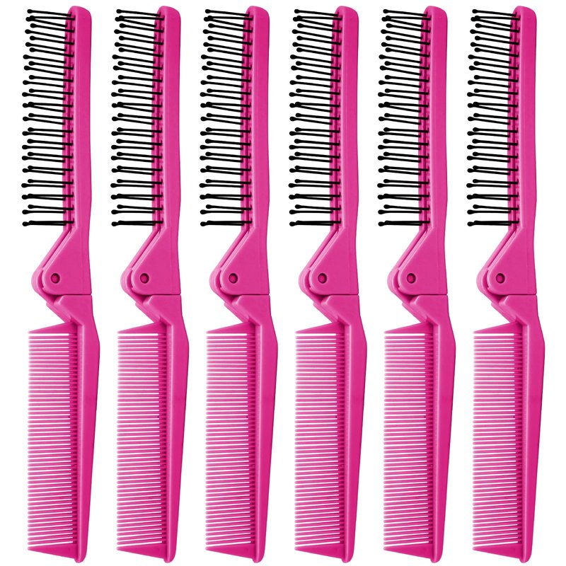 Qjaiune 6PCS Travel Foldable Brush Comb Portable Folding Comb, Anti-Static Hair Comb Mini Pocket Comb, Double Headed Hair Brush Hairdressing Tools Plastic Folding Comb for Men Women (Hot Pink)
