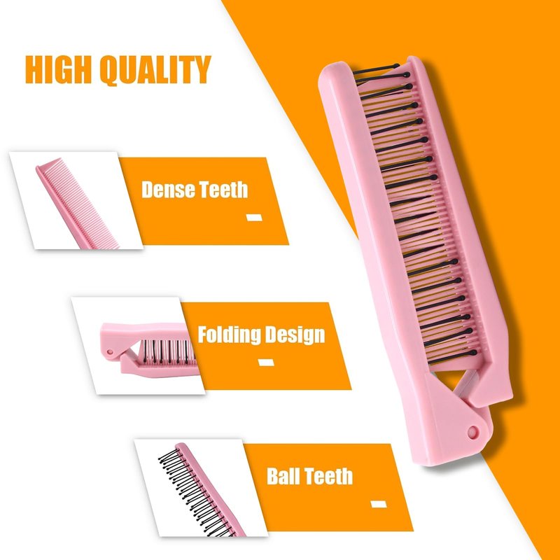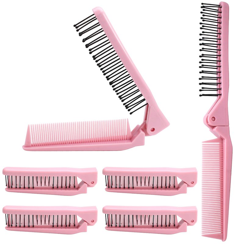 - ✿Package Contains: 6 x foldable compact brush, Color: Pink, Folding Size: 4.3 inch x 0.75 inch x 1.3 inch / 11cm x 1.9cm x 3.5cm (L*W*H), Open Size: 8.27 inch x 0.75 inch x 0.98 inch / 21cm x 1.9cm x 2.5cm (L*W*H),. It can be used for combing straight hair, curly hair and wigs.