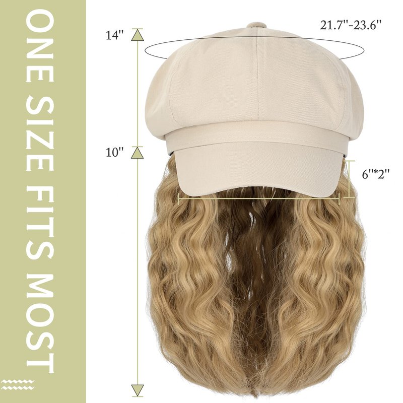 - One size for girs and ladies. Head measurement: 21.7in-23.6in. This women newsboy cap with hair features a classic 8-panel crown and center button design. Inside the hat is the quality clothing lining and smooth sweatband. It's comfortable and breathable to wear. The small visor for hat also keeps the sun out of your eyes.