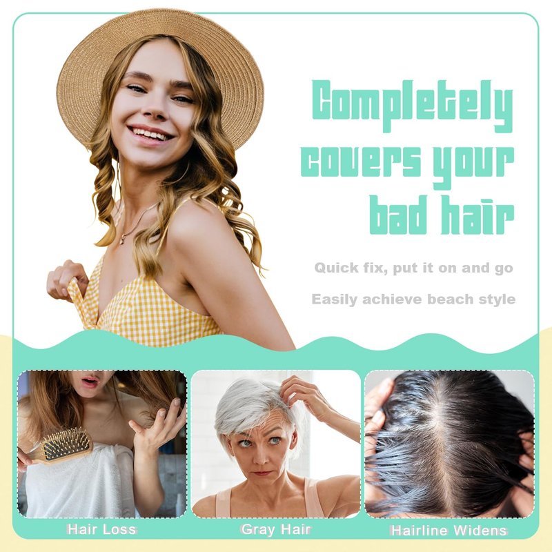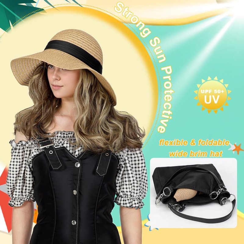 - Extremely versatile. Cool and breathable design makes it comfortable to wear. The straw hat wigs are suitable for everyday use when going to the store. Whether it's more elegant or casual, it'll fit. Good for the beach, the park, a walk, vacation, yardwork etc . If there are wrinkles after taking it out of the package, you can refer to the detailed description to restore it to its original shape.