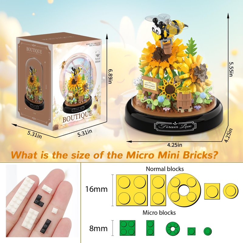 - 🐝【Easy Assemble 】Mini flowers building set come with detailed instructions, whether adults or kids can complete the construction easily.Allowing adults or kids to create happiness in a simple and relaxing atmosphere.