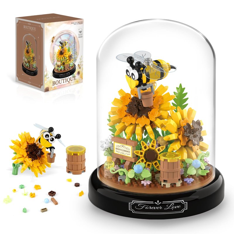 QLT QIAOLETONG Flower Bouquet Building Sets, Animals Flowers Botanical Collection 548 PCS Mini Bricks Building Blocks Toy for Adults, Valentine's Day for Her (Bee)