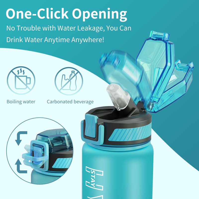 - ✔️Easily Open & Leakproof: Our motivational water bottles flip-top lid is designed with a secure lock, which effectively preventing dust and leak-proof. It can be easily opened with one hand. Our sports water bottles for school has a silicone nozzle with a straw inside to prevent turbulent water flow.