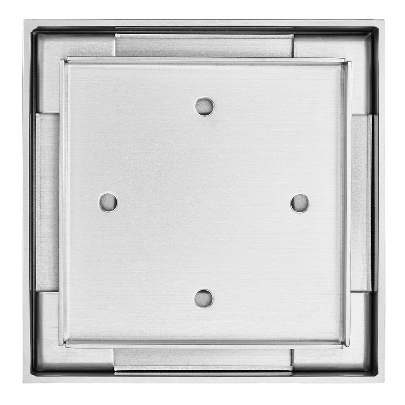 QM Square Tile Insert Shower Drain, Base and Grate made of 100% Stainless Steel Marine 316, Delmar Series Mist Line, Satin Finish, 4 inch, Kit includes Hair Trap/Strainer and Key