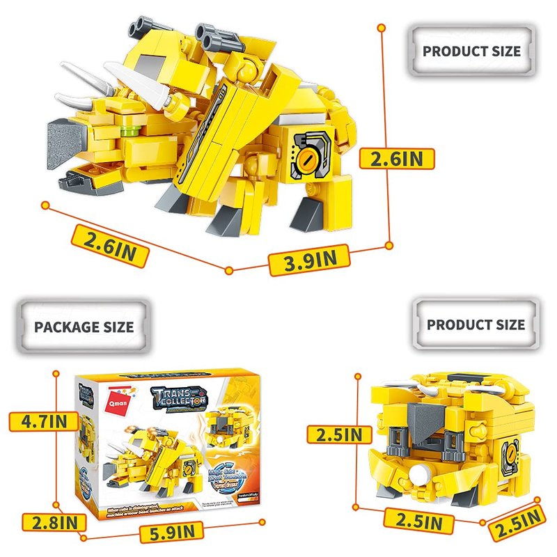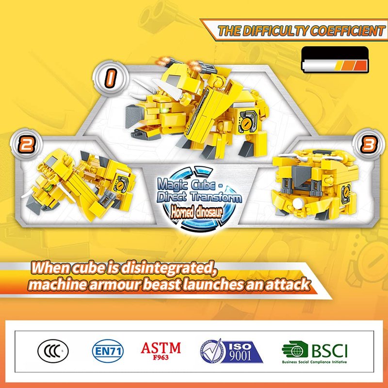 QMAN Transform Beast Building Blocks Toy, Transform Magic Cube & Triceratops Educational Toy for Kids 4-12 Year and Up, Fun Animal Dinosaurs Transform Assemble Toys