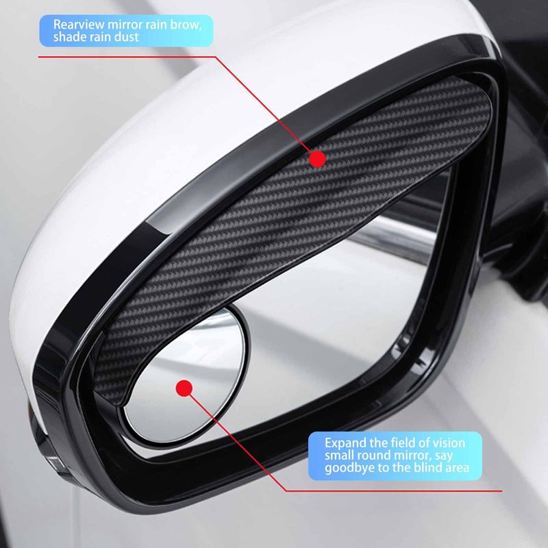 QODOLSI 2 PCS Car Rearview Blind Spot Mirror Rain Eyebrow Integrated, 2-in-1 Carbon Fiber Rain Eyebrow Reflective Protection Shield, Adjustable Expanded View Reversing Mirror, Universal Car (Black)