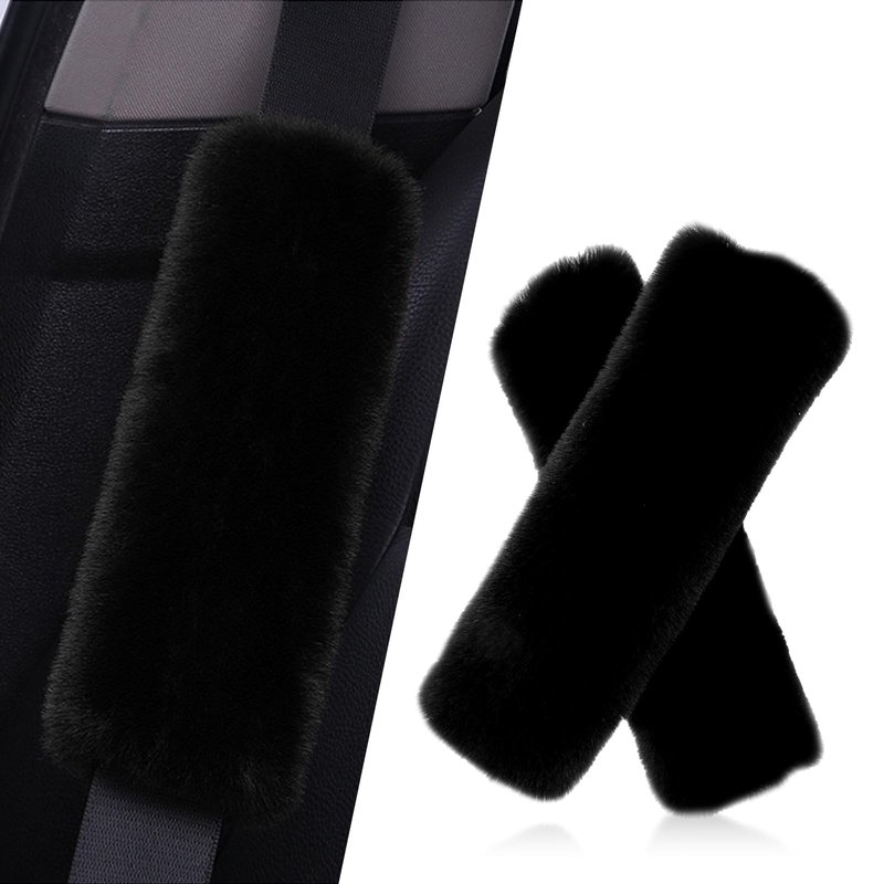 QODOLSI Pack-2 Car Seat Belt Pads, Fluffy Shoulder Pads, Self-adhesive Auto Protective Pads, Soft Faux Rabbit Plush Pads, Backpack Strap Cover, Universal for Most Cars, Trucks, SUVs (Black)