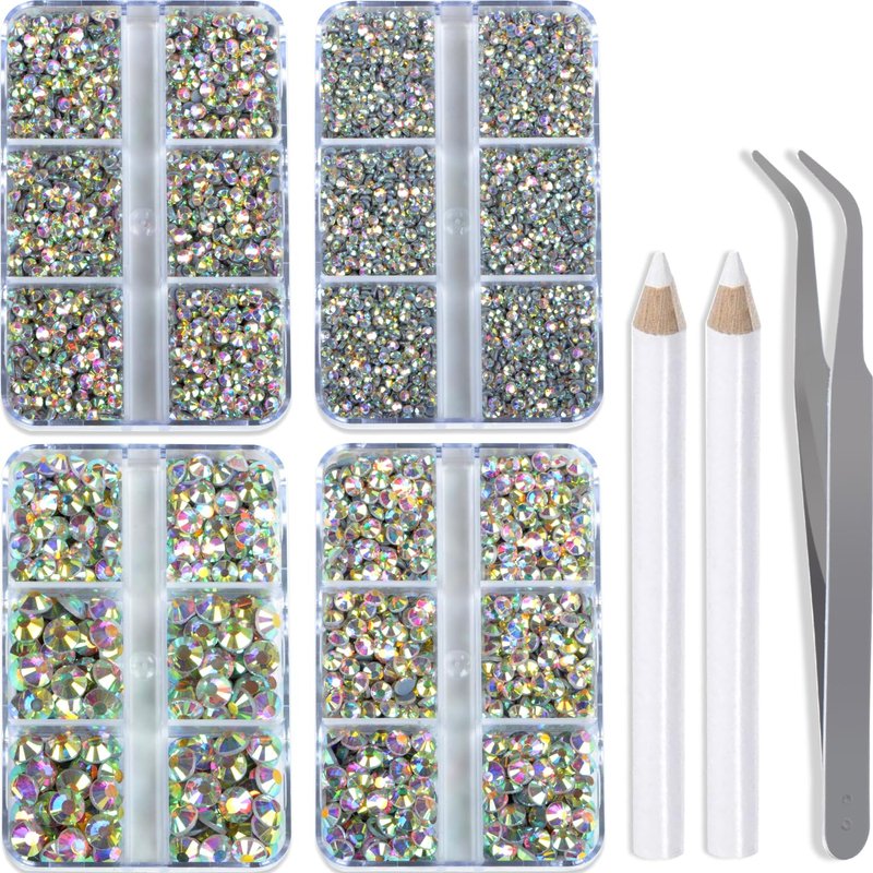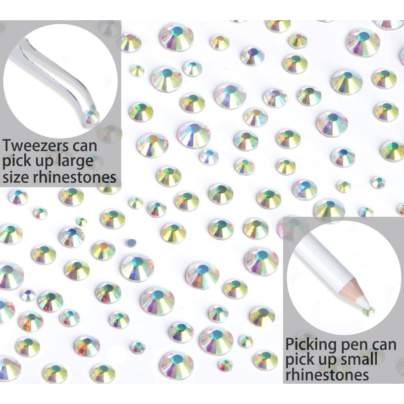 QOGIR 10000 Pieces 5 Mixed Size Clear AB Hotfix Rhinestones for Crafts Clothes Nail Art with Tweezers and Picking Rhinestones Pencil