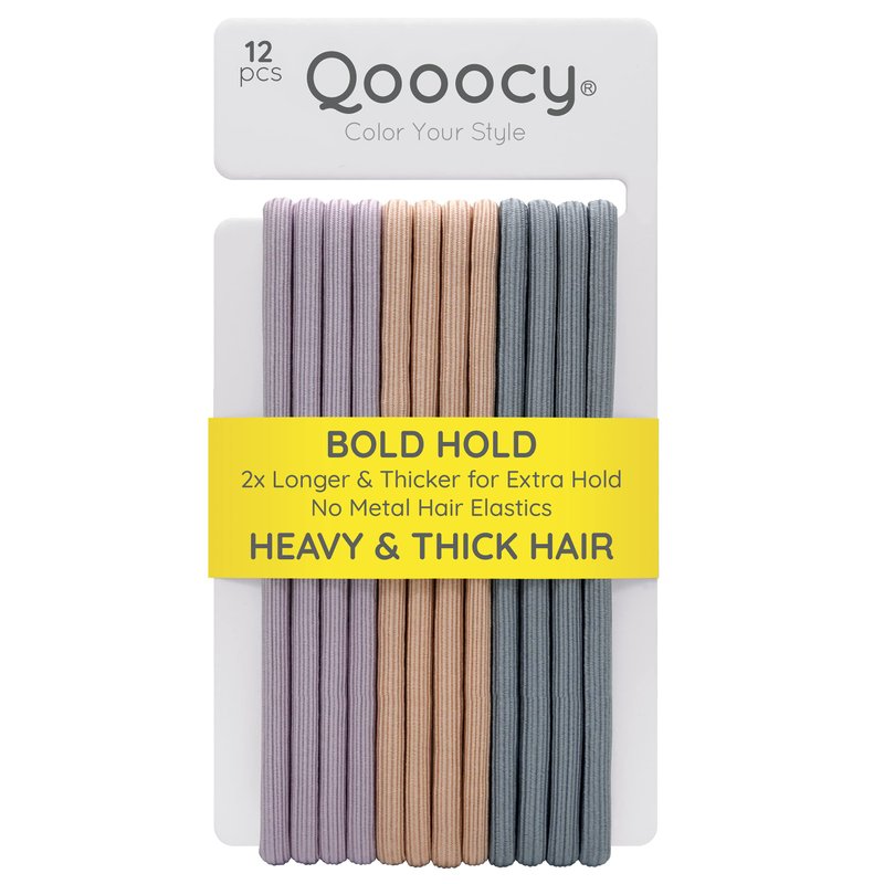 Qooocy Extra Long Hair Tie for Long Thick and Curly Hair Elastic Ponytail Holders for Women or Men No Metal Long Hair Bands Hair Accessories for Long Lasting Braids, 12 Count, Smoky Purple